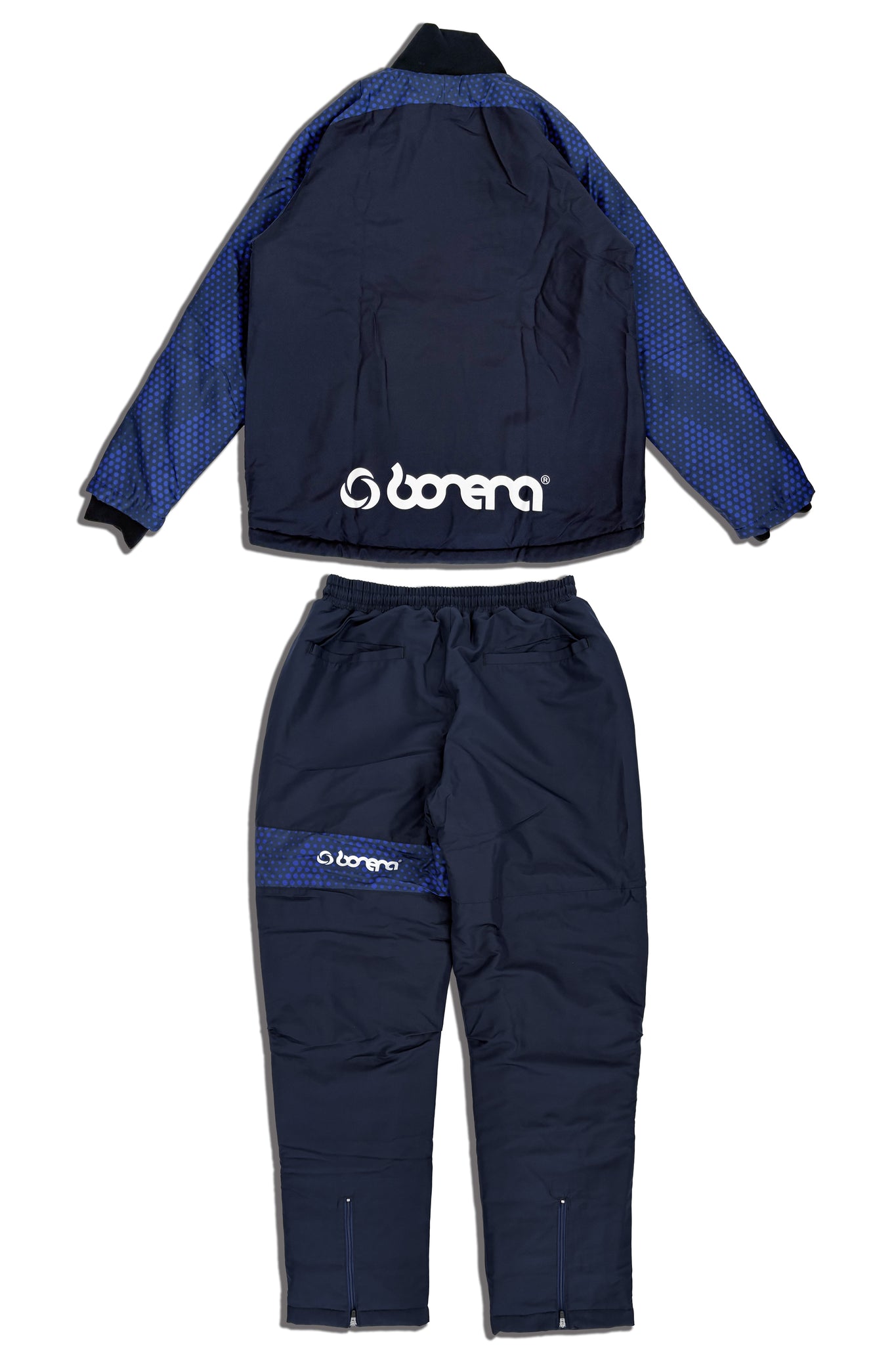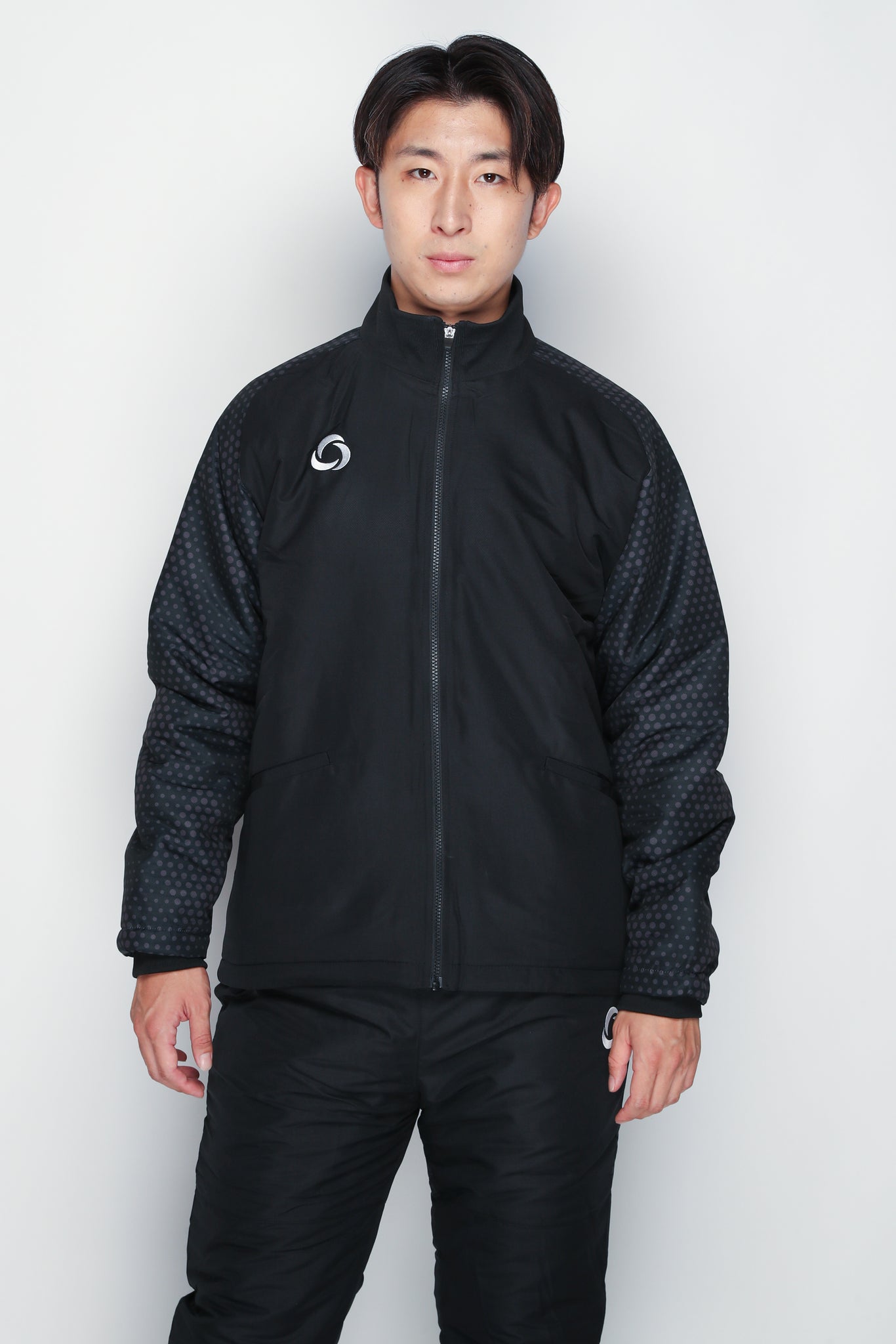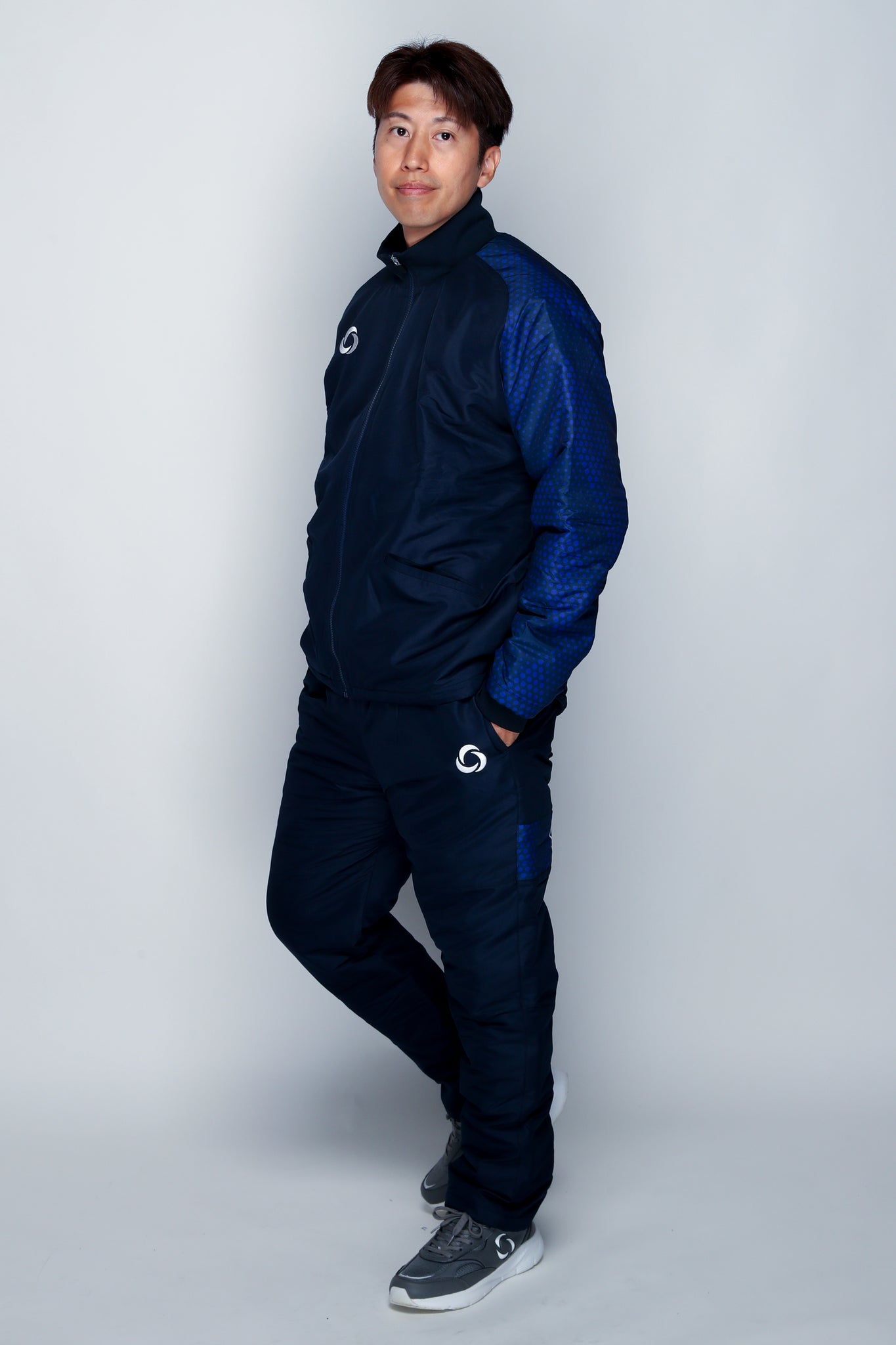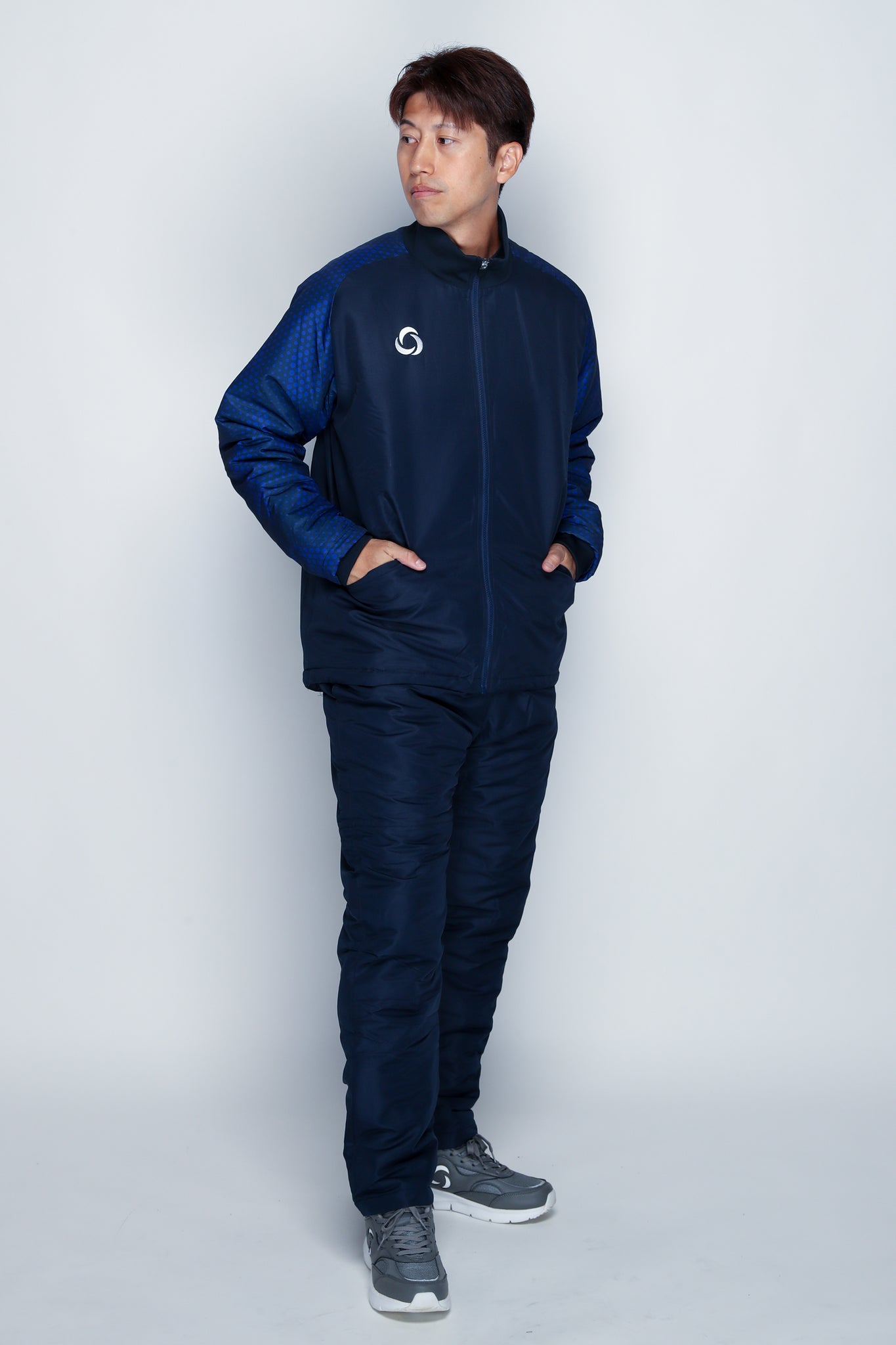 中綿を贅沢に使った暖かさに定評のあるセットアップ。移動時や練習時に最適。寒い時期に重宝する人気商品